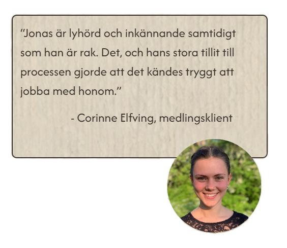 “Jonas är lyhörd och inkännande samtidigt som han är rak. Det, och hans stora tillit till processen gjorde att det kändes tryggt att jobba med honom.”